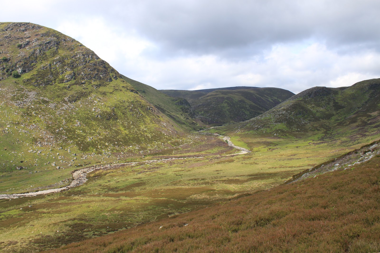 Eventually the path levels out and I had a very pleasant walk high above the river with great views back down along the glen. The weather was still holding fair, although I knew that the forecast was for it to breakdown later in the day. For the moment however I still had my jacket in my rucksack and was wearing a baseball cap to keep the sun off my bald bit!